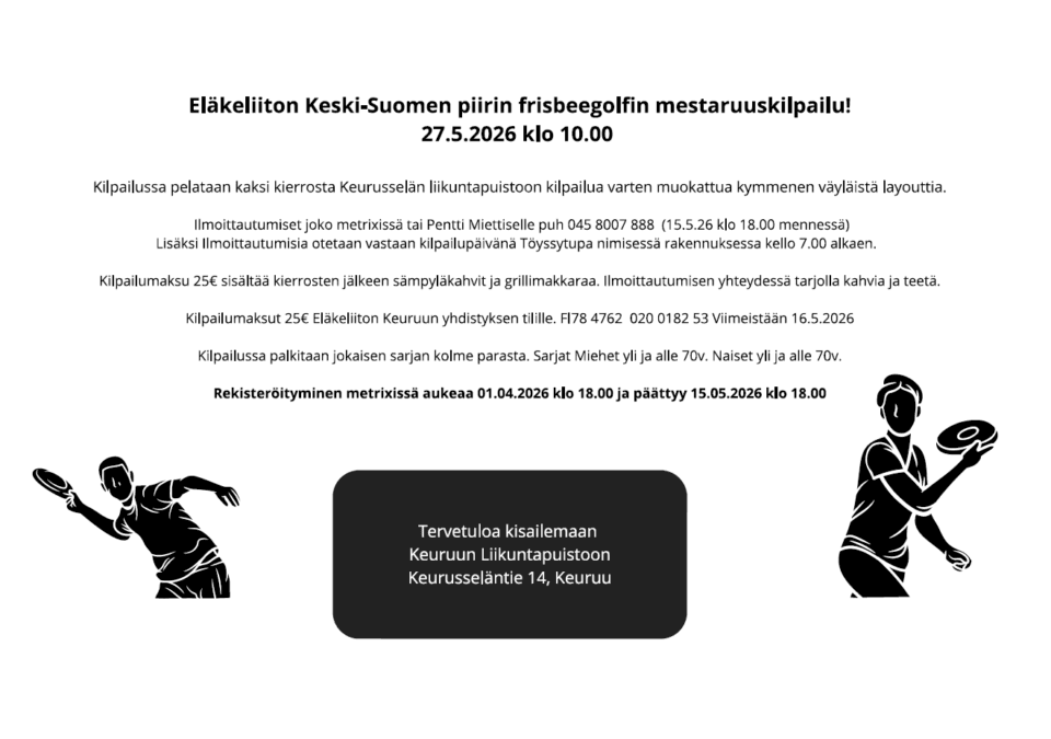 EL:n Keski-Suomen piirin frisbeegolfin mestaruuskilpailut 27.5.2026
