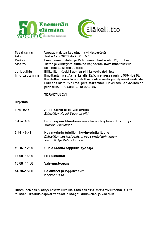 Vapaaehtoisten koulutus- ja virkistyspäivä 19.5.2026